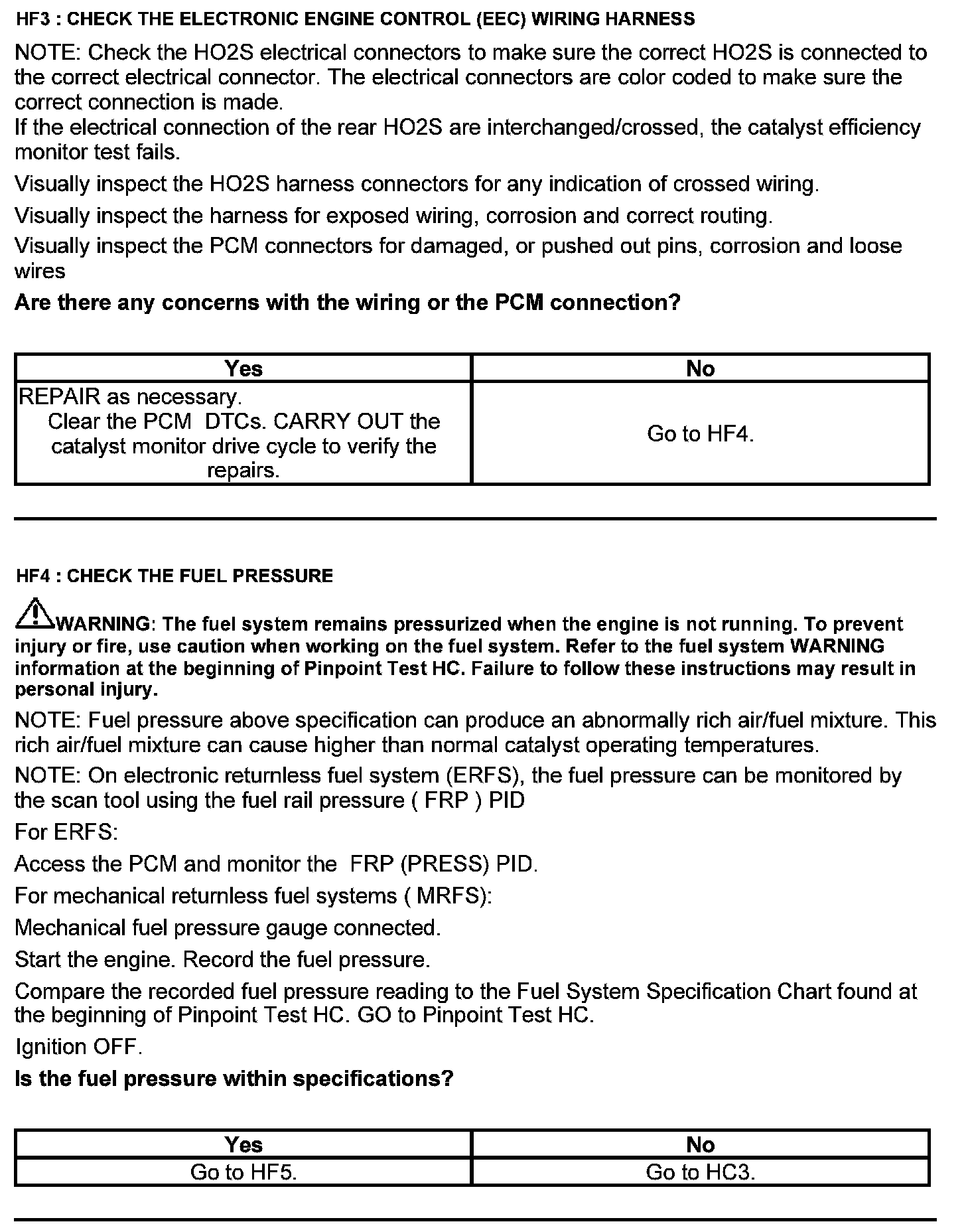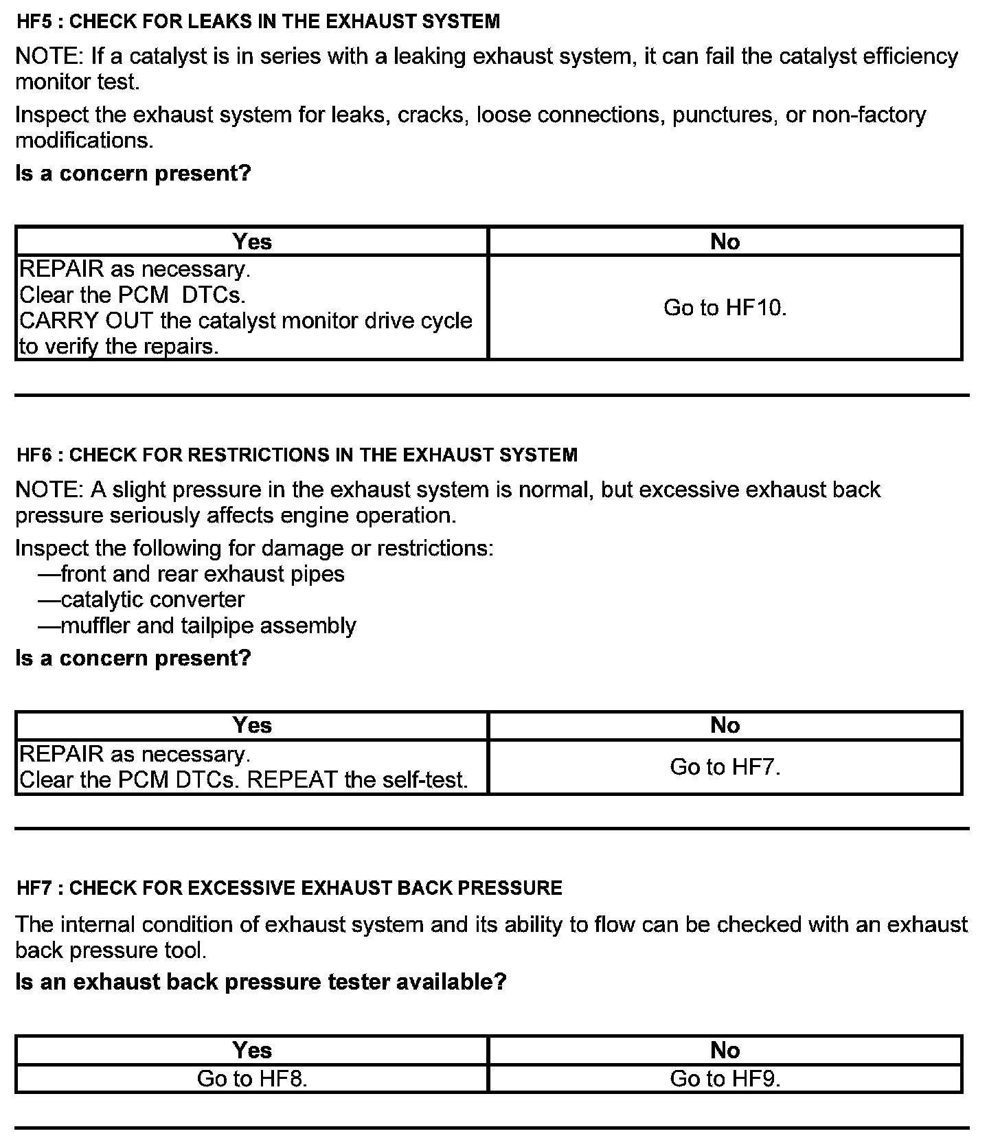 Test HF: Catalyst Efficiency Monitor and Exhaust Systems