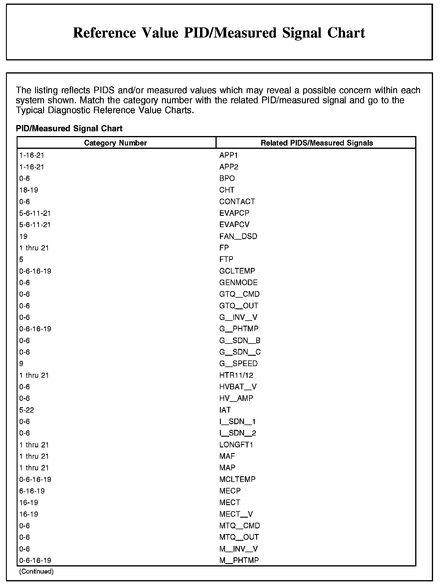 REFERENCE VALUE PID/MEASURED SIGNAL CHART