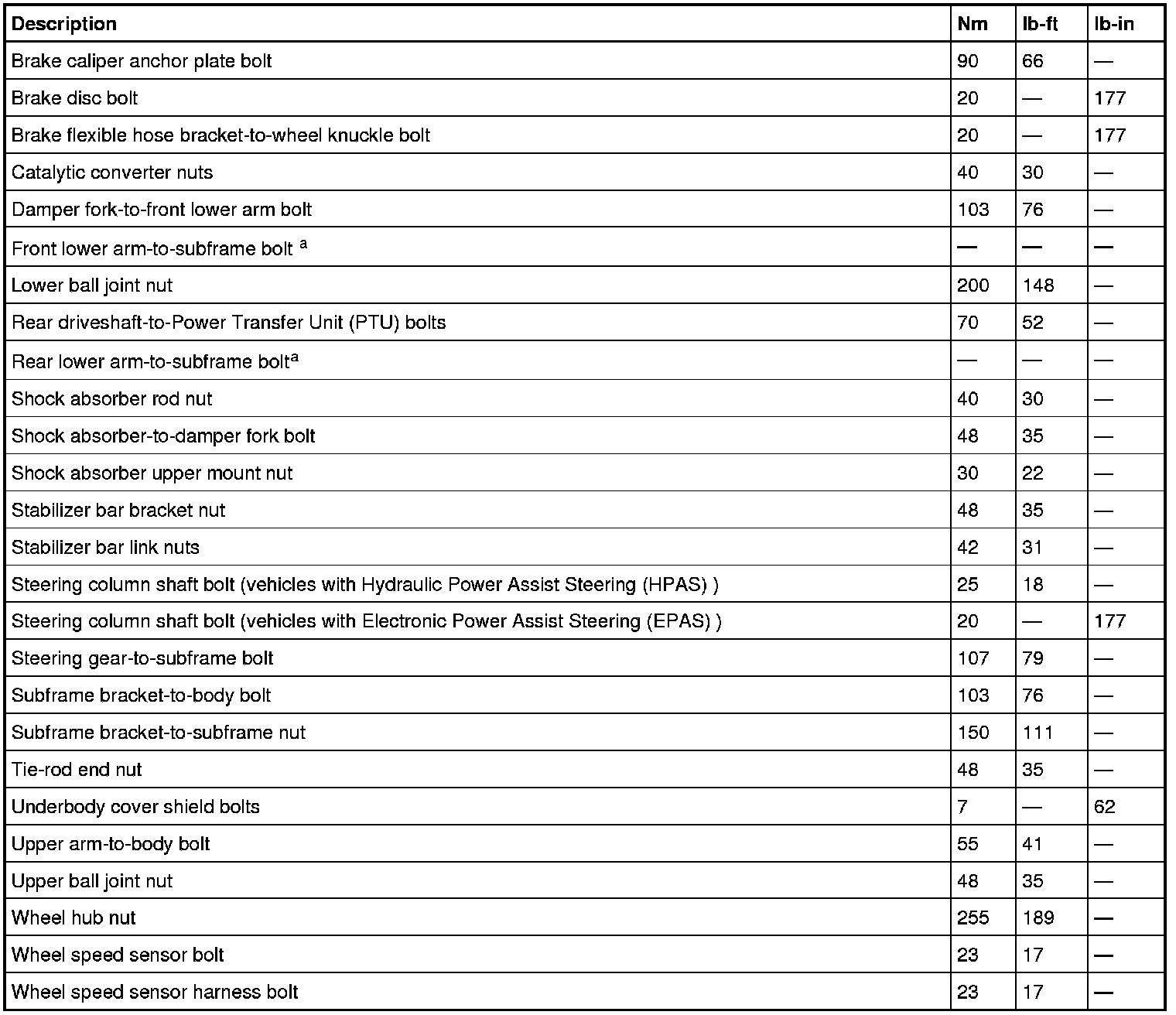 Torque Specifications