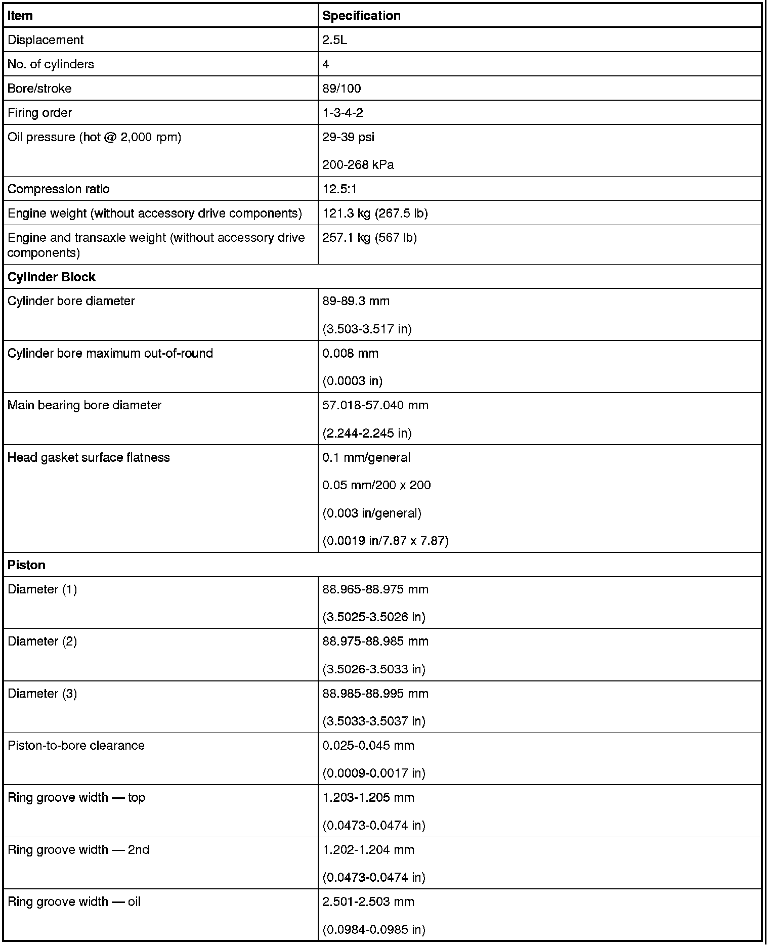 General Specifications