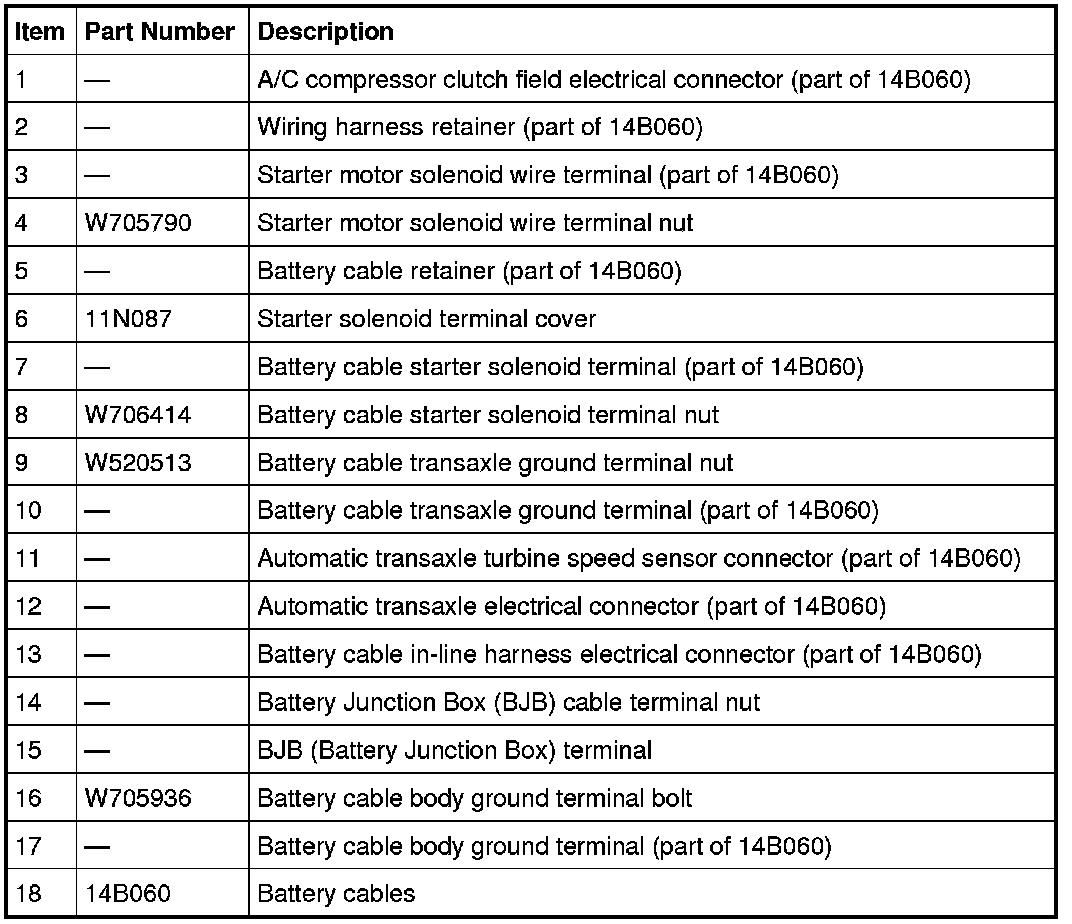 4. Remove the nut and position the Battery Junction Box (BJB) cable terminal aside.