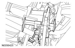 3. Position a suitable transmission hydraulic jack to the axle housing. Securely strap the jack to the housing.