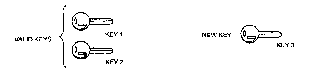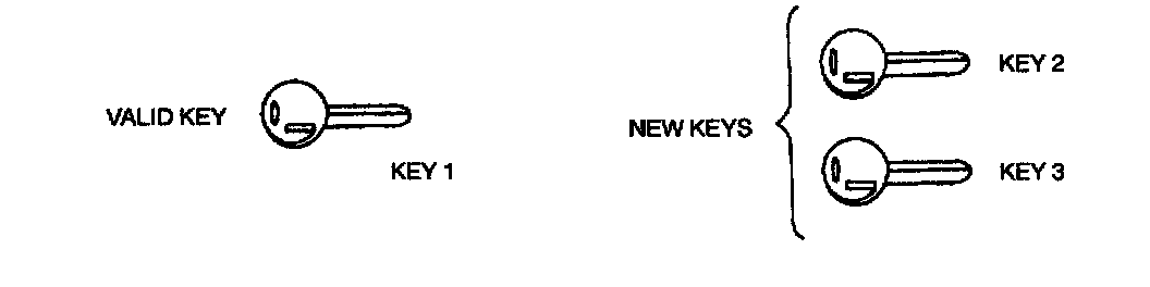 2. Turn key 1 to ON then back to LOCK six times. Key should not remain at ON or LOCK for more than one second. It is particularly important to ensure that the 6th turn is done within 1 second.