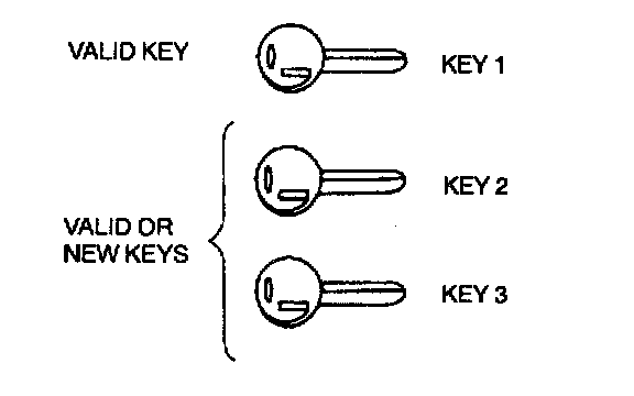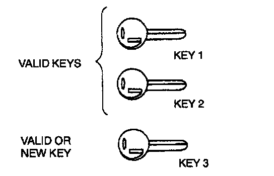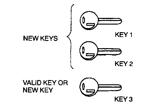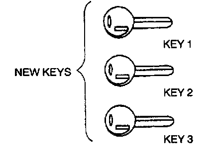 1. Using key 1, start engine. After security light illuminates for 1 - 2 seconds, turn key 1 to LOCK.