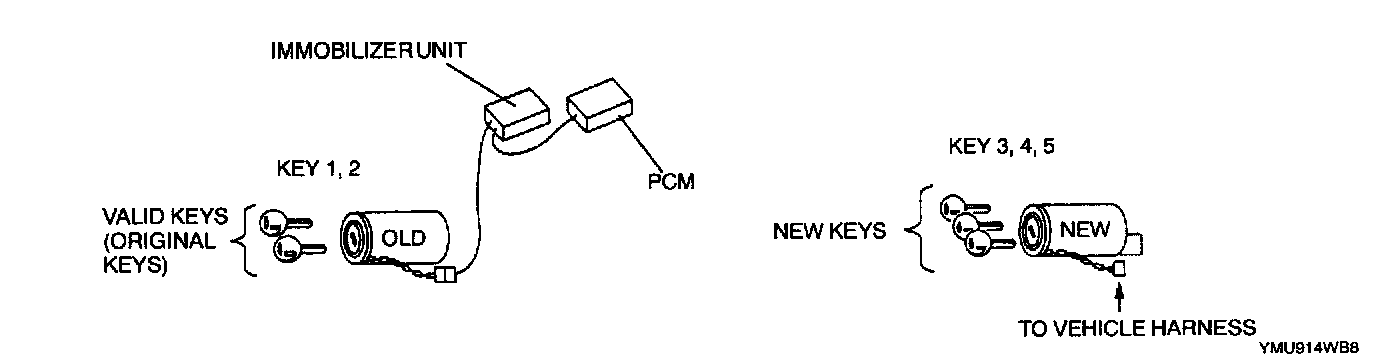 - To make a copy of the key or replace the immobilizer system component parts (the key(s), steering lock, immobilizer unit and/or PCM), customer should bring all keys to the dealer. This is because the previously programmed key IDs are erased when reprogramming the key IDs into the immobilizer unit and PCM.