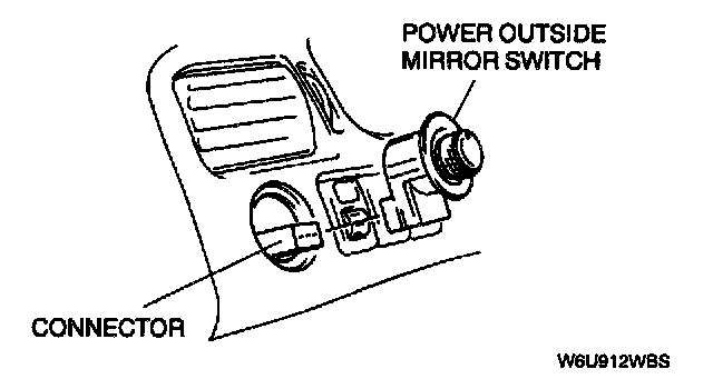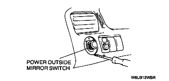 2. Insert a tape-wrapped, flathead screwdriver between the power outside mirror switch and the meter hood.