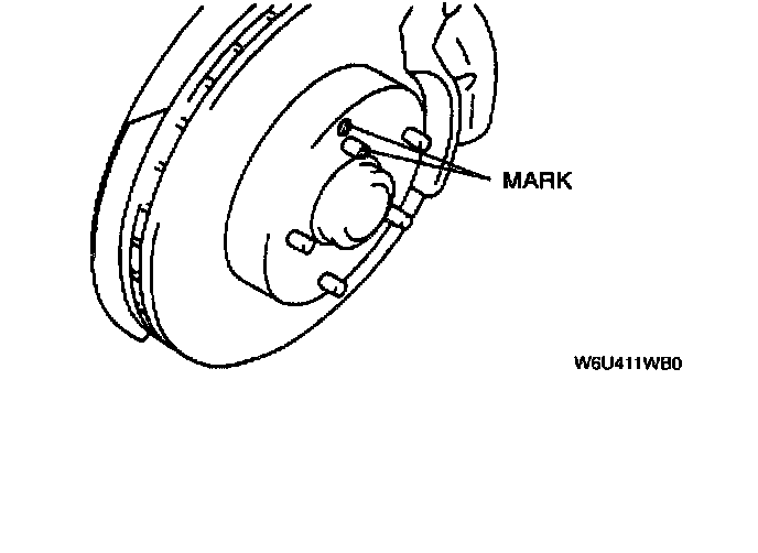 ^ Mark the wheel hub bolt and disc plate before removal for reference during installation.