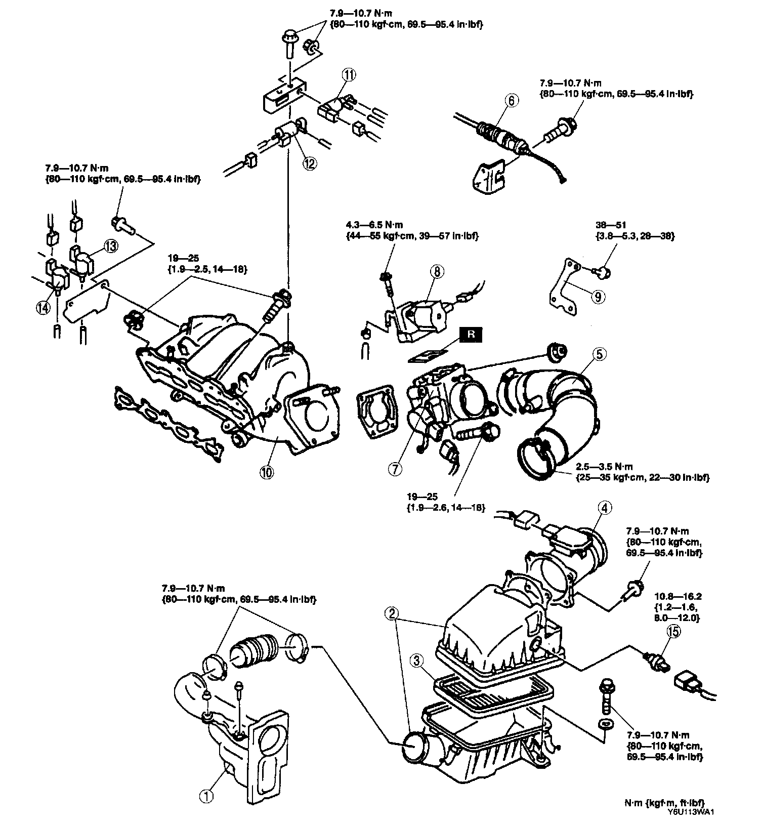 Warning: When the engine and Intake-air system are hot, they can badly burn. Turn off the engine and wait until they are cool before removing or Installing the Intake-air system.