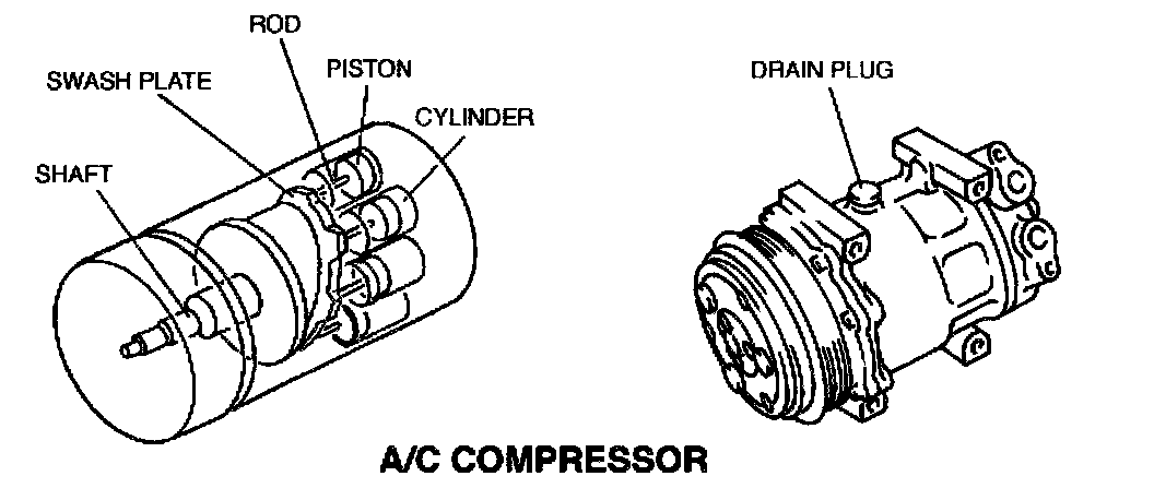 - A drain plug is installed in the A/C compressor which improves service when the oil is drained.