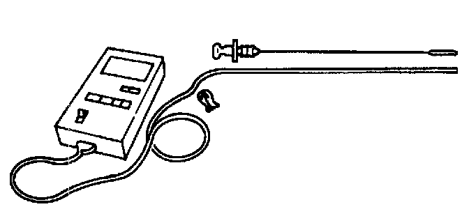 3. Adjust the length of the thermistor probe measure to the same length as the dipstick and hold the probe with a paper holder. Insert into the filler tube and measure the temperature.