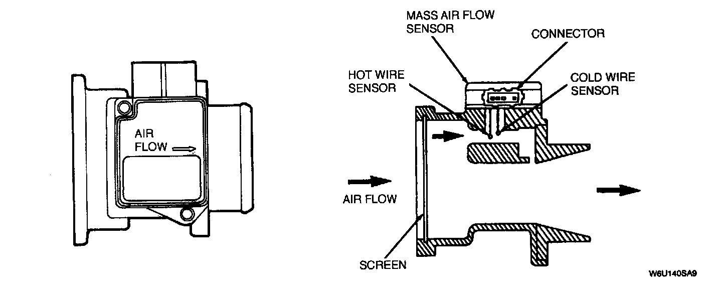- The mass air flow (MAF) sensor uses a hot wire to measure the amount of mass air intake flow.