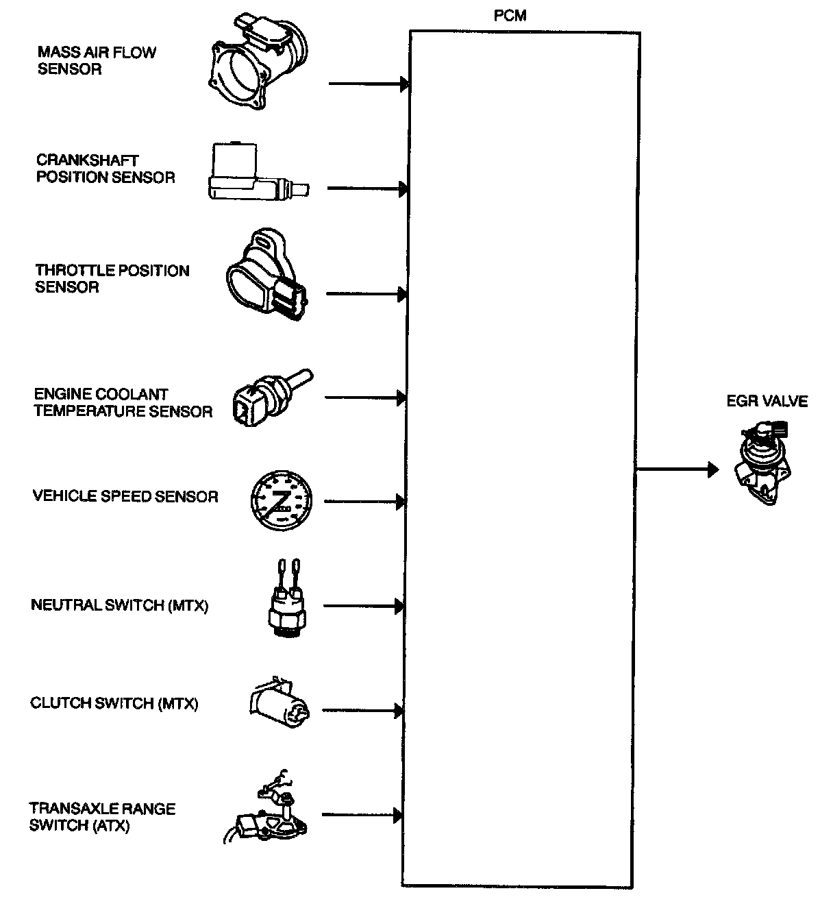 - The circuits of the EGR system devices are continuously monitored by the PCM.