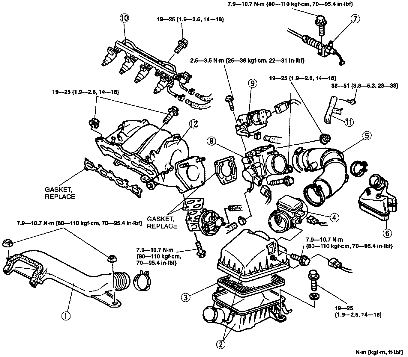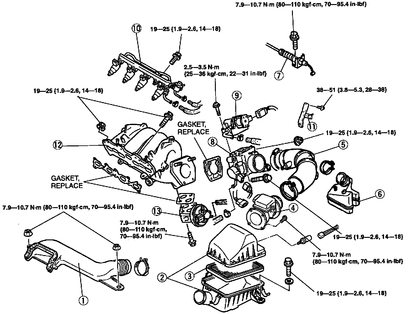 Tightening torque: 17.2 - 22.0 Nm (1.75 - 2.25 kgs.cm, 12.7 - 16.2 ft. lbs.)