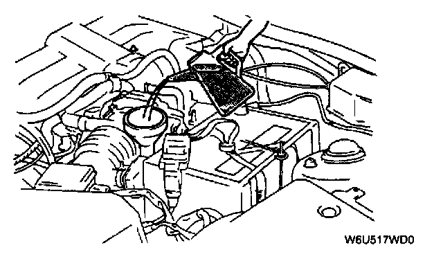 5. Add the specified type of ATF through the oil filler tube, until ATF level reaches lower notch of dipstick.
