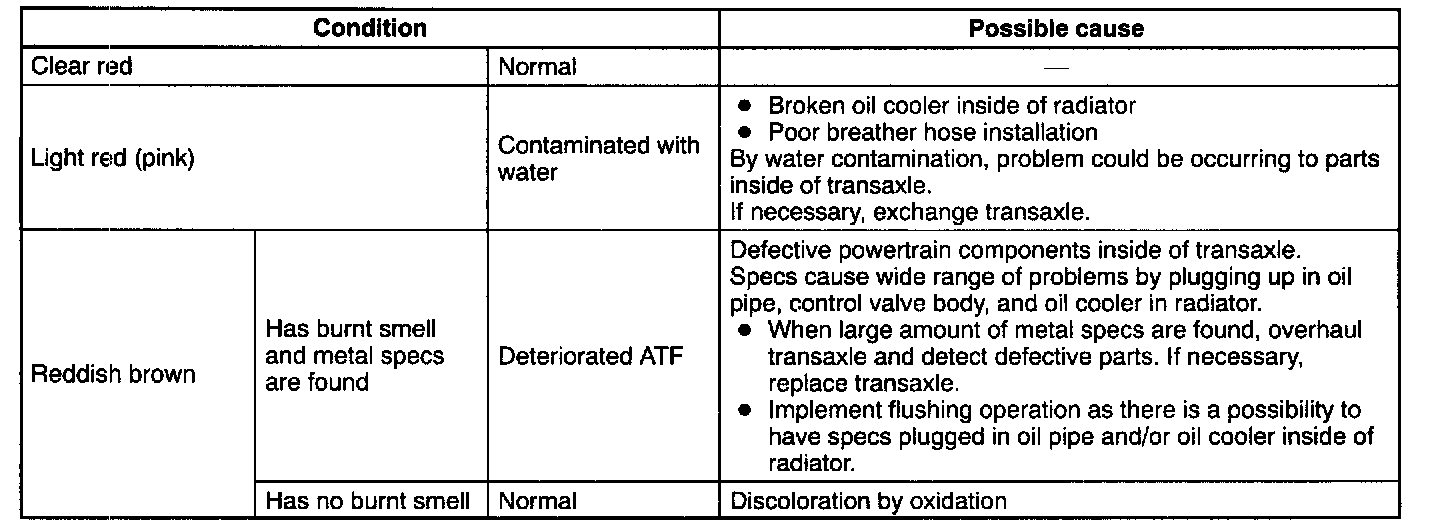 AUTOMATIC TRANSAXLE FLUID (ATF) INSPECTION [GF4A-EL]ATF Condition Inspection
