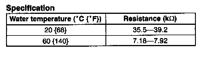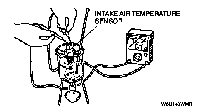 1. Remove the intake air temperature sensor.2. Place the intake air temperature sensor in water with a thermometer, and heat the water gradually.