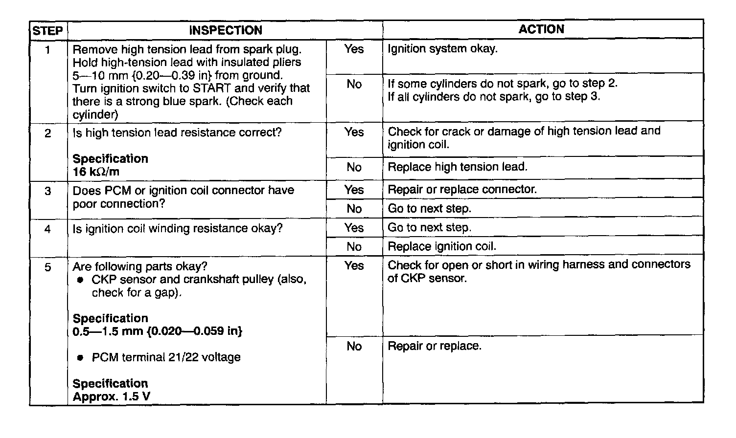 WARNING: High voltage in the ignition system can cause strong electrical shock which can result in serious injury. Avoid direct contact to the vehicle body during the spark test.