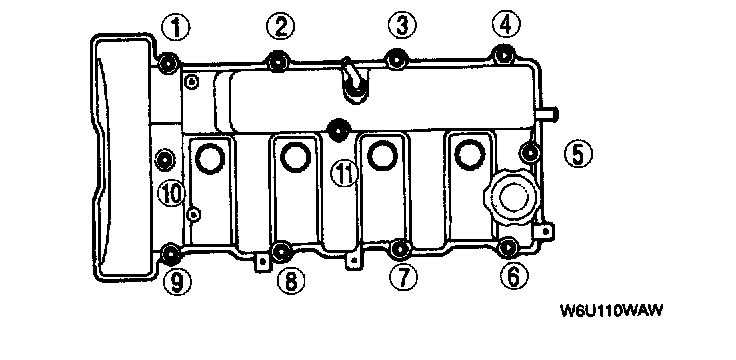 - Loosen the cylinder head cover bolts in two or three steps in the order shown.