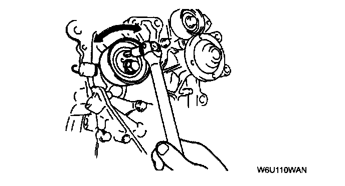 3. Rotate the tensioner. If tensioner rotates with no resistance or does not rotate, replace the tensioner.