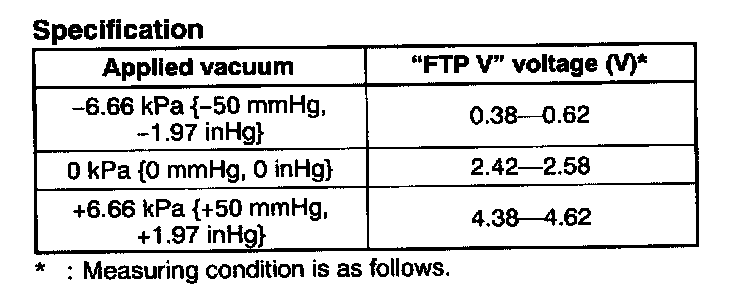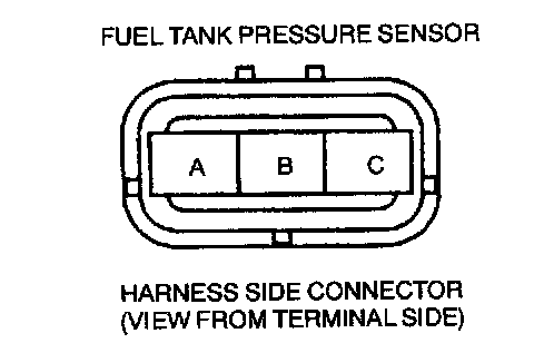 - Fuel tank pressure sensor terminal A voltage: Ground (Below 1.0 V)