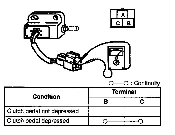 2. Inspect for continuity between terminals of the starter interlock switch using an ohmmeter.