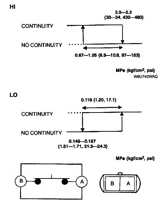 4. Check for continuity between terminals of the refrigerant pressure switch.