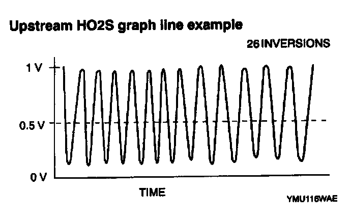 9. Count the number of times (inversions) that the upstream H02S graph line actually crosses the 0.5 V line.