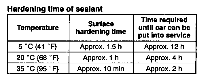 CAUTION: To prevent the sealant from cracking or the glass from being pushed out by air pressure if a door is closed, open all of the windows and leave them open until the sealant has hardened.