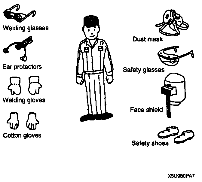 - Protective head covering and safety shoes should always be worn. Depending upon the nature of the work, gloves, safety glasses, ear protectors, face shield, etc., should also be used.