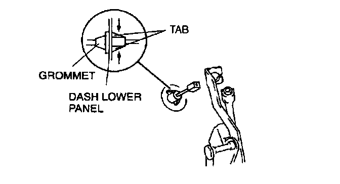 3. Press the tabs of the grommet, and remove it from the dash lower panel.