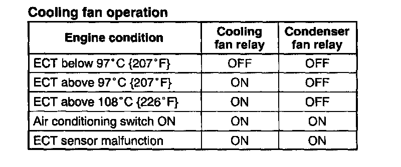 - If operational sound is heard, inspect cooling fan relay and open circuit in wiring harnesses and connectors.