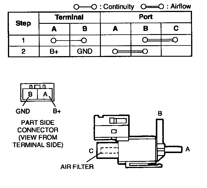 - EGR boost sensor solenoid valve connector terminal B and PCM connector terminal 3T to ground.