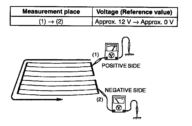 CAUTION: Directly touching the rear window defroster filament with the lead of the circuit tester will damage it. Wrap aluminum foil around the end of the lead and test the filament by touching it with the foil.