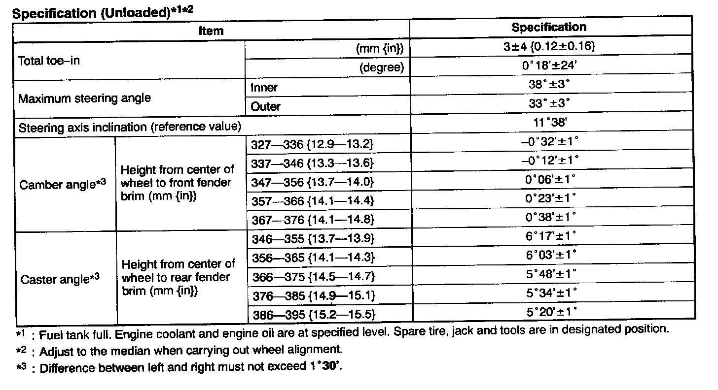 ^ Turning the front cam one graduation changes the camber about 29' and the caster about 25'. Turning the rear cam one graduation changes the camber about 2' and the caster about 25'.