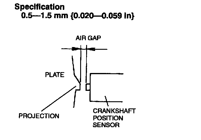 - If not as specified, adjust the crankshaft position sensor air gap and inspect as follows: