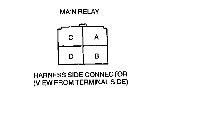- Crankshaft position sensor connector terminal A and main relay terminal D through common connector to ground.