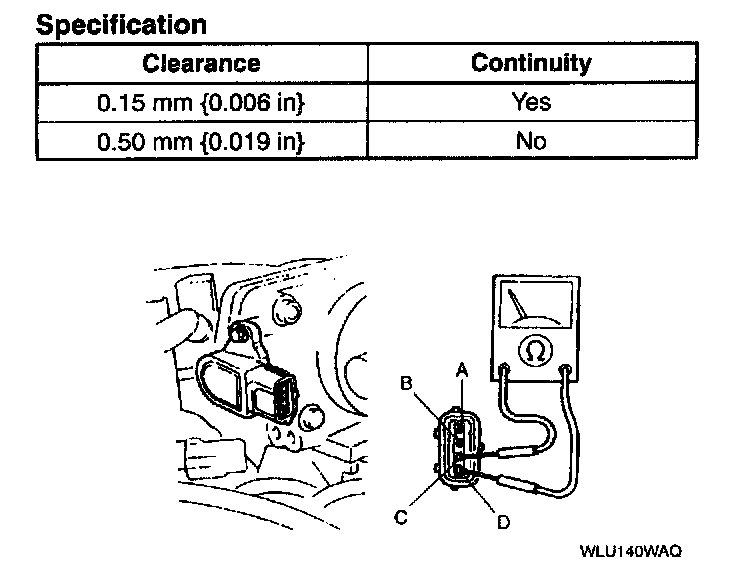 4. Insert a feeler gauge between the throttle adjusting screw (TAS) and the throttle lever. By adjusting the throttle adjusting screw (TAS), verify the continuity between the CTP switch terminals C and D are as follows using an ohmmeter.