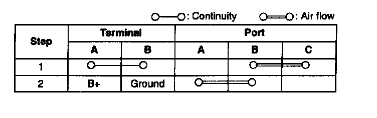 Inspect air flow between ports of the solenoid valve under the following condition.