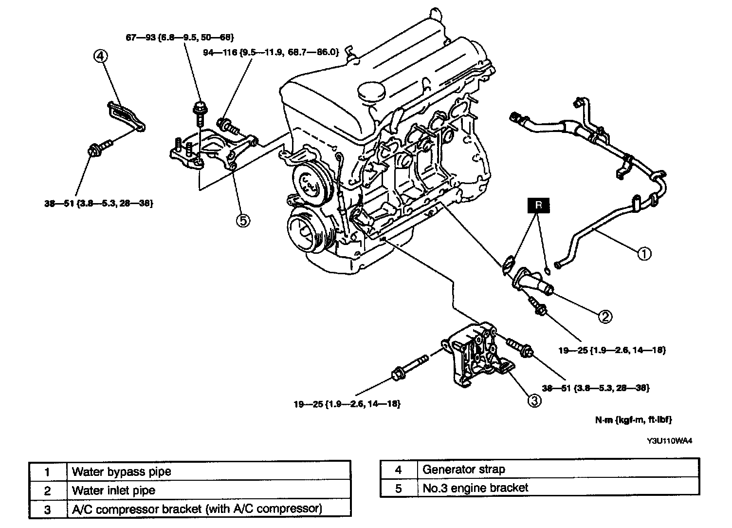 1. Tighten the No.3 engine mount bolt and nut in the order shown.