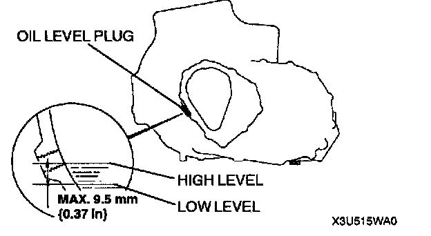 - If the oil level is low, add the specified type of oil to the bottom of the plug port through the oil level plug hole.