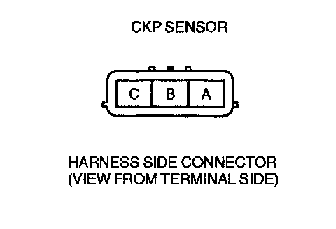 1. Disconnect the CKP sensor connector.2. Measure the resistance between CKP sensor terminals A and B using an ohmmeter.