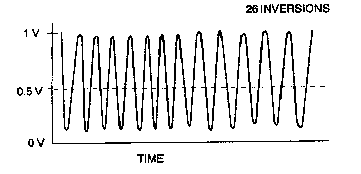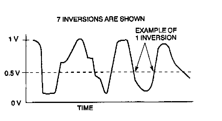 10. Count the number of times (inversion) that the downstream H025 graph line actually crosses the 0.5V line.