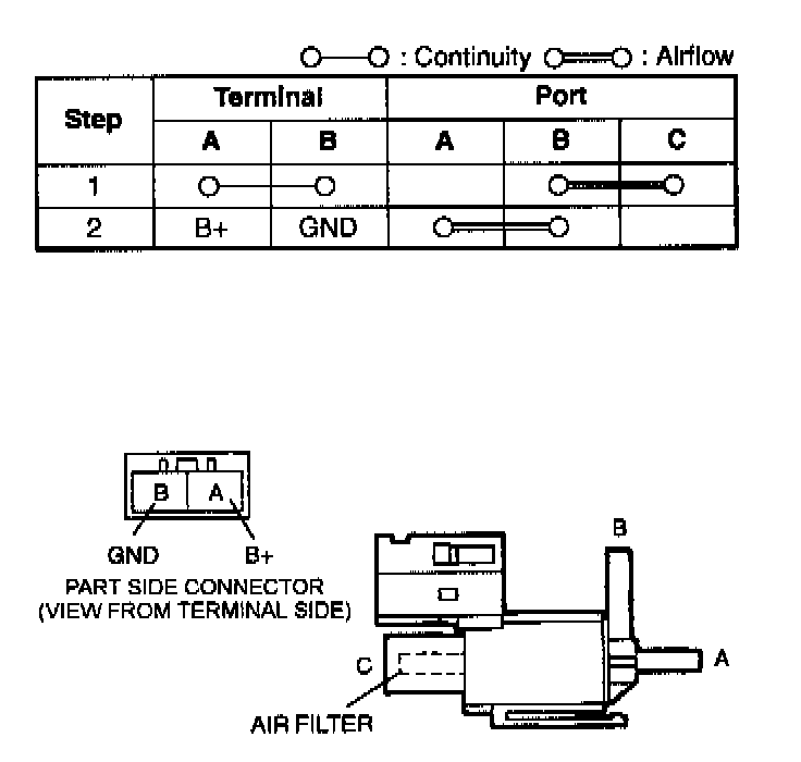 - EGR boost sensor solenoid valve connector terminal B and PCM connector terminal 98 to ground.