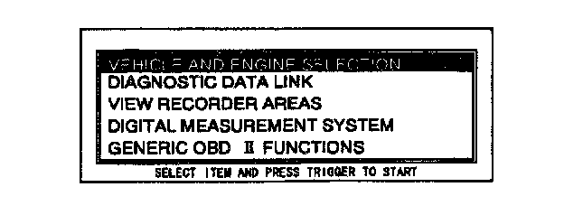 3. Move the cursor to VEHICLE & ENGINE SELECTION. Press the TRIGGER key to enter this selection.