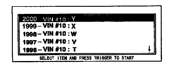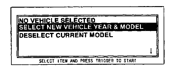 4. Move the cursor to SELECT NEW VEHICLE YEAR & MODEL. Press the TRIGGER key to enter this selection.