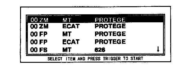 7. The vehicle selection screen showing the selected vehicle will be displayed. Move the cursor to the vehicle selected. Press the TRIGGER key.