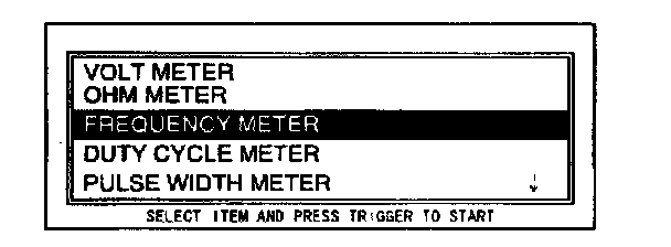 10. Move the cursor to FREQUENCY METER. Press the TRIGGER key to enter this selection.