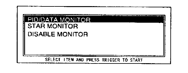 12. Move the cursor to PID/DATA MONITOR. Press the TRIGGER key to enter this selection.