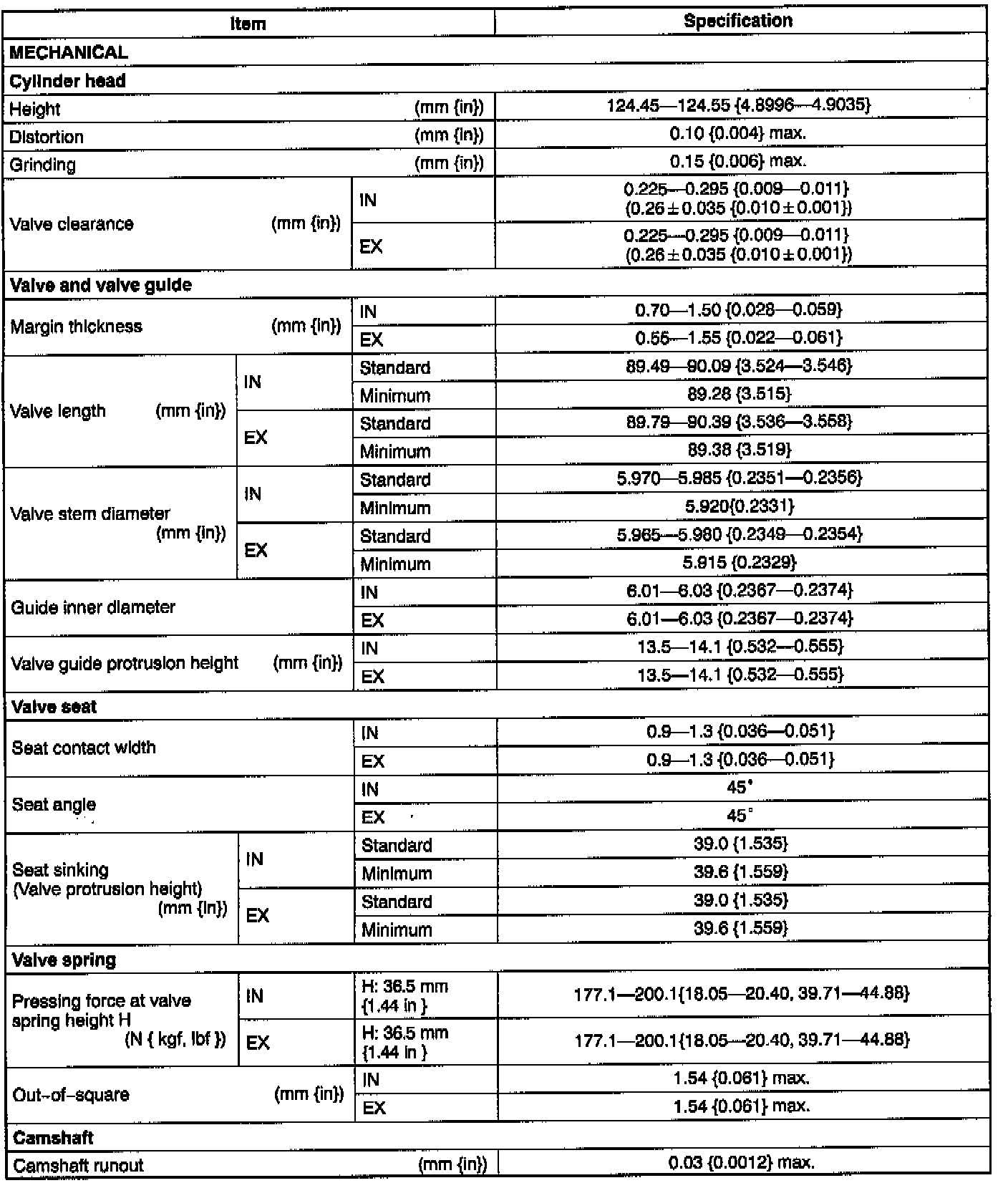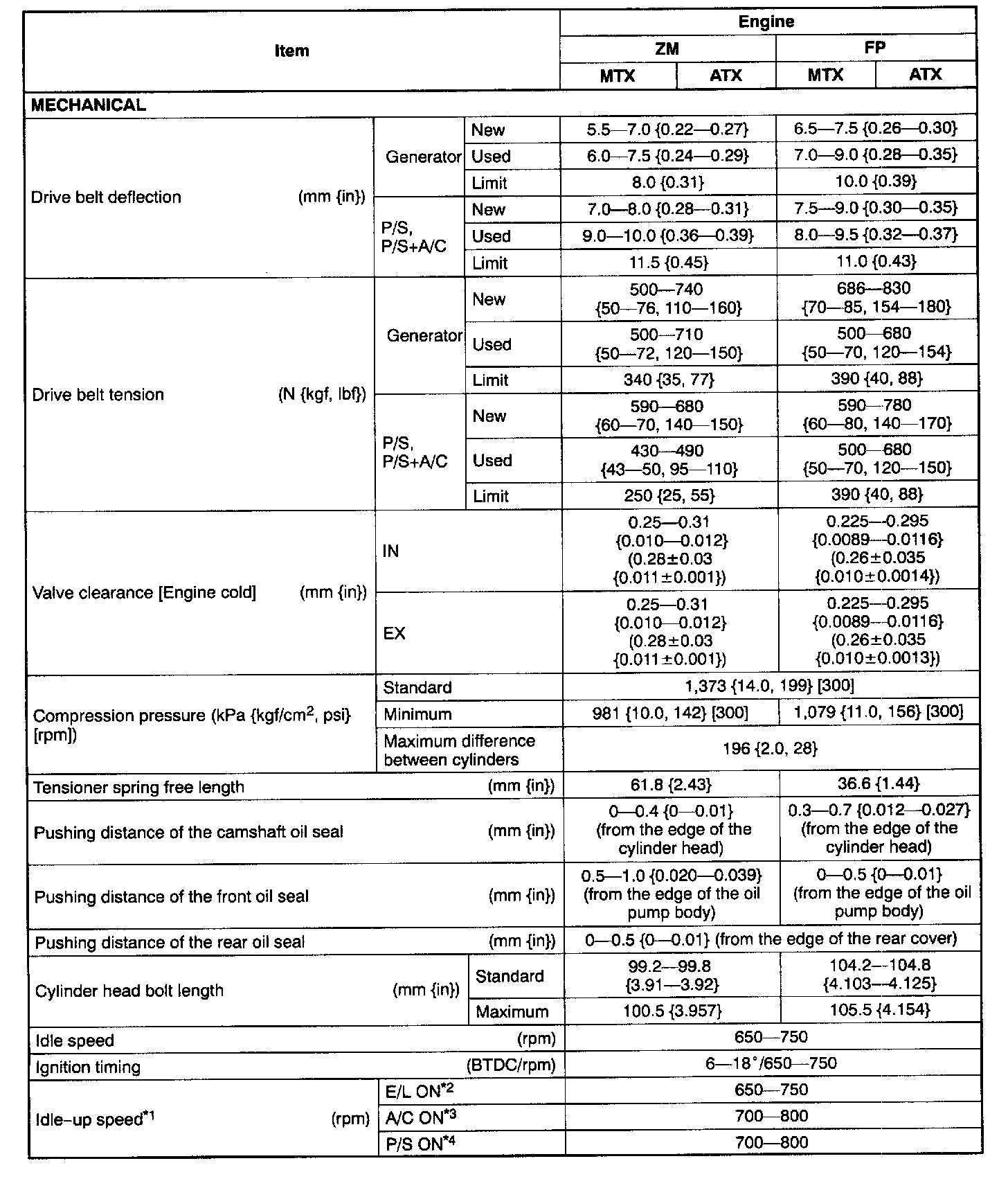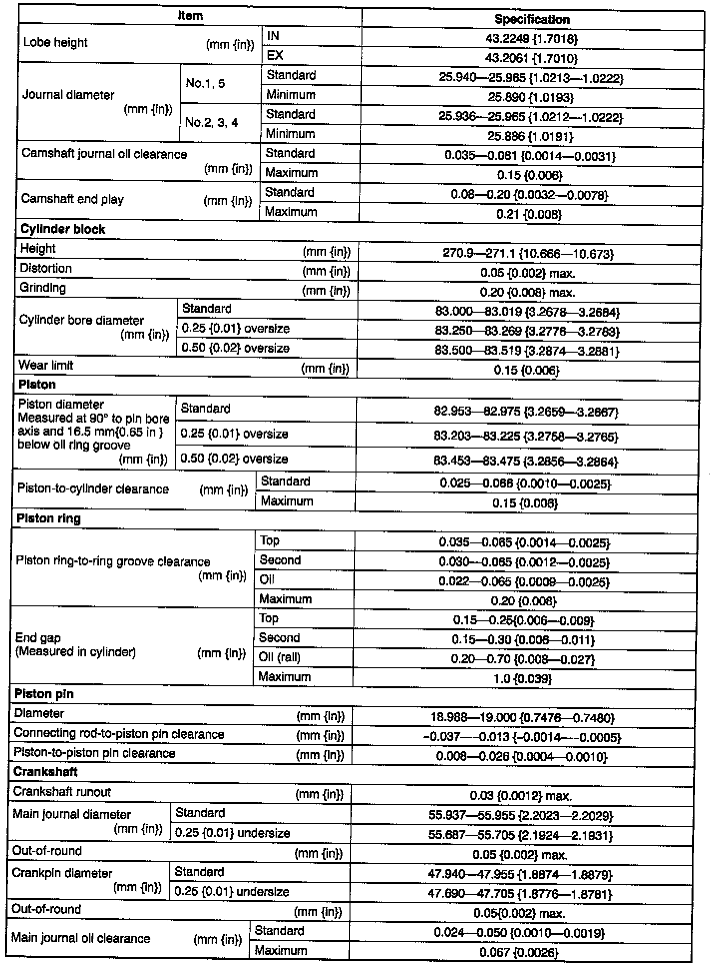 General Engine Specifications