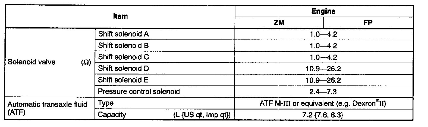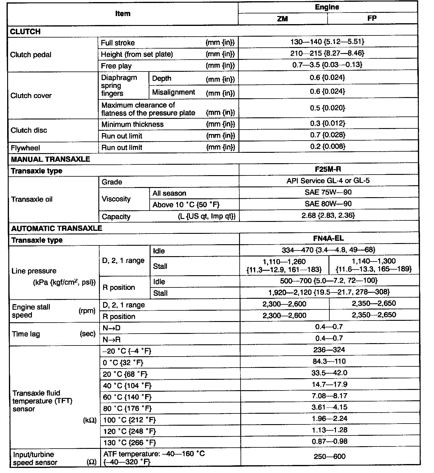 TRANSMISSION/TRANSAXLE TECHNICAL DATA